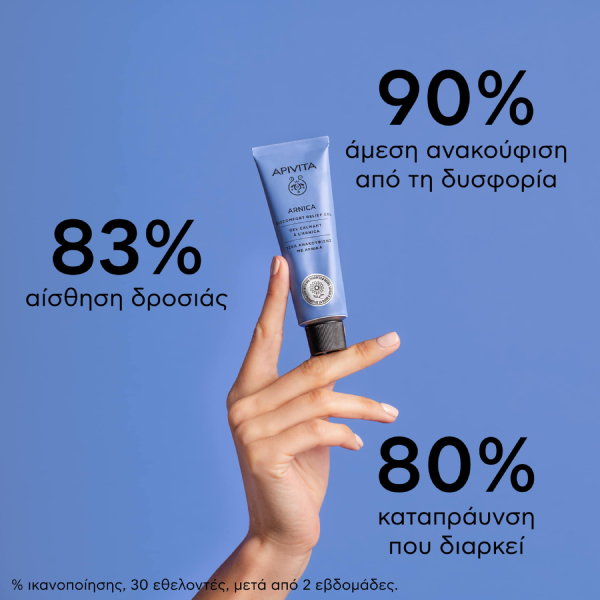 Το Apivita Arnica Τζελ Ανακούφισης με Άρνικα, ανακουφίζει άμεσα τη δυσφορία στις περιοχές του δέρματος όπου εφαρμόζεται.