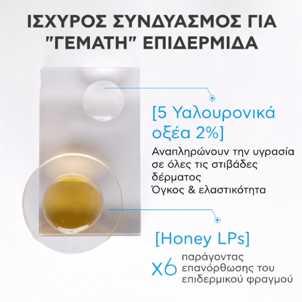 Ανακαλύψτε τον ισχυρό συνδυασμό 5 τύπων Υαλουρονικού Οξέος και Μελιού για άμεσα λεία και "γεμάτη" επιδερμίδα.