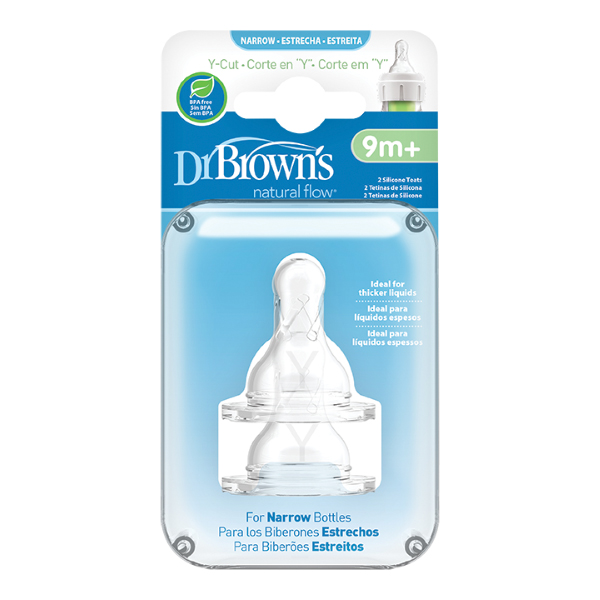 Οι Dr. Brown’s Natural Flow 312 Y-Cut προηγμένης τεχνογνωσίας θηλές φυσικής ροής, είναι ειδικά σχεδιασμένες για τα μπιμπερό με στενό λαιμό.