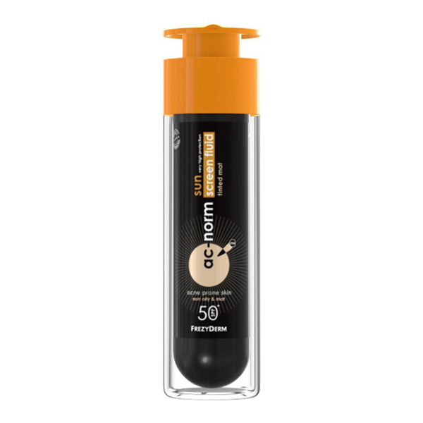 Το Frezyderm AC-Norm Sun Screen Fluid Tinted Mat έχει νέα, ανανεωμένη σύνθεση επικαλυπτικού αντηλιακού προσώπου με χρώμα για το λιπαρό, με τάση ακμής δέρμα.