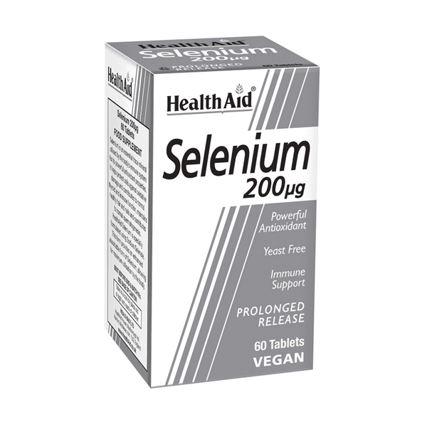 Συμπλήρωμα διατροφής Selenium από την Health Aid που συμβάλλει στη διατήρηση της φυσιολογικής κατάστασης των μαλλιών και των νυχιών και στην υγεία του ανοσοποιητικού συστήματος.