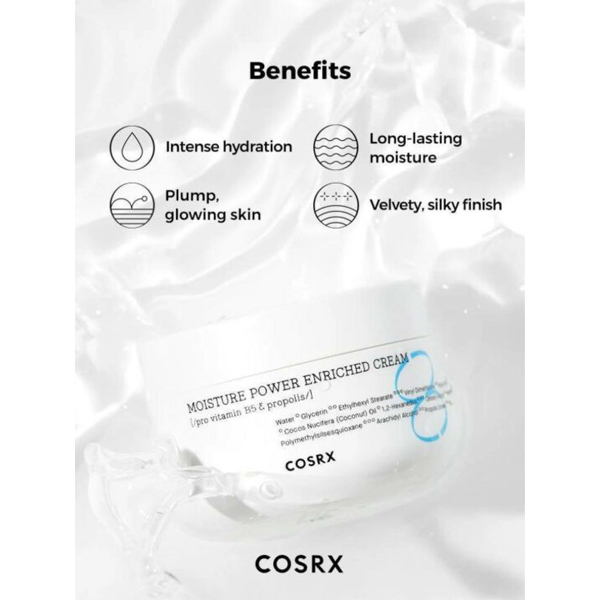 Η Moisture Power Enriched Cream από την COSRX, είναι μια ελαφριά κρέμα με γρήγορη απορροφητικότητα που παρέχει άμεση ενυδάτωση στο ερεθισμένο, κόκκινο δέρμα, στο ακνεϊκό δέρμα και γενικά σε δέρματα που έχουν ευαισθησίες.