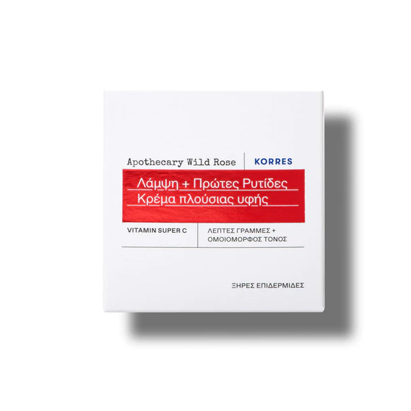 Πλούσια θρεπτική κρέμα ημέρας Korres Apothecary Wild Rose που απορροφάται χωρίς να αφήνει λιπαρότητα για 24ωρη ενυδάτωση, λάμψη και πρώτες ρυτίδες.