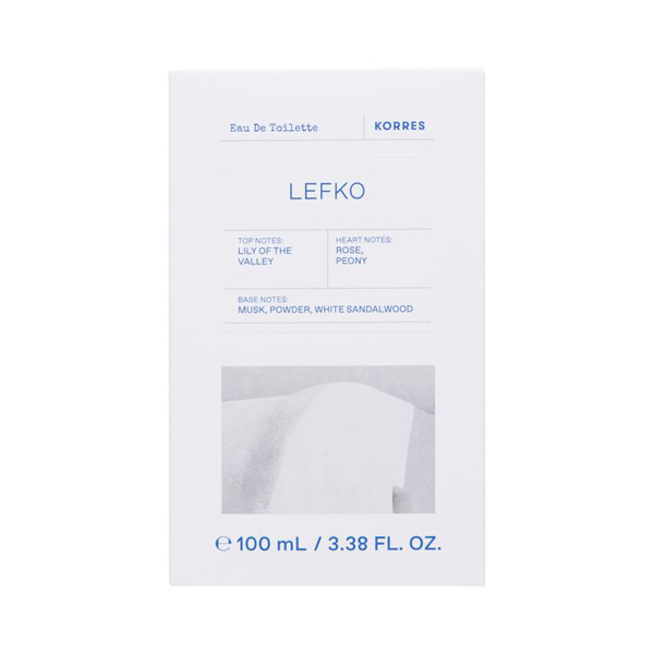 Το Korres Lefko Eau de Toilette θυμίζει άρωμα καθαριότητας των φρεσκοπλυμένων σεντονιών, απλωμένων κάτω από τον καταγάλανο ουρανό του Αιγαίου.