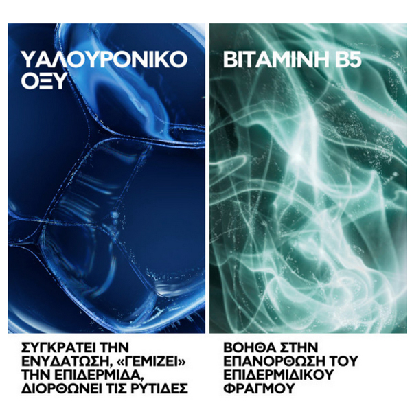Hyalu B5 Suractivated Cream αντιρυτιδική κρέμα από την La Roche-Posay, για άμεση σύσφιγξη και λείανση, επανόρθωση και αναπλήρωση με την ισχυρή σύνθεση 3 τύπων Υαλουρονικού οξέος με συμπληρωματική δράση [Ενθυλακωμένου + Χαμηλού μοριακού βάρους + Υψηλού μοριακού βάρους], Βιταμίνης B5 και Εκτοΐνης για εντατική ενυδάτωση, επανόρθωση και ενδυνάμωση του επιδερμιδικού φραγμού, "γέμισμα" και διόρθωση της εμφάνισης των σημαδιών γήρανσης.