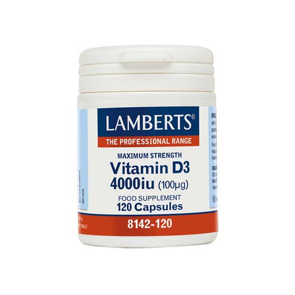 Η Vitamin D 4000iu της Lamberts αποτελεί ένα κλινικά επιβεβαιωμένο συμπλήρωμα διατροφής το οποίο παρέχει εγγυημένα 4000iu (100μg) Βιταμίνης D σε μορφή χοληκαλσιφερόλης (D3) και όπως όλα τα σκευάσματα της Lamberts, παρασκευάζεται εντός του Ηνωμένου Βασιλείου σύμφωνα με τα αυστηρά πρότυπα της Φαρμακευτικής GMP (Pharmaceutical GMP).