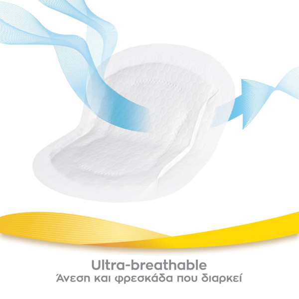 Σχεδιασμένα με γνώμονα τις μητέρες, αυτά τα ultra-thin λεπτά επιθέματα θηλασμού μιας χρήσης (μόνο 1,6mm) απορροφούν 50 φορές το βάρος τους, έτσι ώστε να νιώθετε στεγνές, άνετες και με αυτοπεποίθηση όλο το 24ωρο. Επιτρέπουν τον αερισμό της ευαίσθητης περιοχής του στήθους κατά 20% περισσότερο σε σύγκριση με τον κύριο ανταγωνισμό, είναι εξαιρετικά μαλακά και διαθέτουν ειδική προστασία που αποτρέπει τις πλευρικές διαρροές. Τα επιθέματα θηλασμού μιας χρήσης Ultra-breathable της Medela έχουν σχεδιαστεί για μέγιστη απορροφητικότητα. Σας κρατούν στεγνές και η πλευρική προστασία από διαρροές συγκρατεί με ασφάλεια το μητρικό γάλα για επιπλέον ασφάλεια. Ο απορροφητικός πυρήνας τριών επιπέδων και το αδιάβροχο πίσω στρώμα βοηθούν στην προστασία των ρούχων σας. Επειδή η άνεση είναι υψίστης σημασίας, τα επιθέματα θηλασμού μιας χρήσης Ultra-breathable έχουν σχεδιαστεί για βέλτιστη κυκλοφορία του αέρα και επιτρέπουν τον αερισμό της ευαίσθητης περιοχής του στήθους κατά 20% περισσότερο σε σύγκριση με τον κύριο ανταγωνισμό.