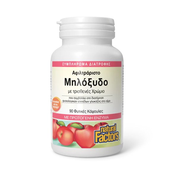 Το μηλόξυδο χρησιμοποιείται παραδοσιακά για καλύτερη πέψη και τον έλεγχο του βάρους, ενώ το χρώμιο συμβάλλει στην ικανότητα του οργανισμού να μεταβολίζει τα θρεπτικά συστατικά και στη διατήρηση υγιούς βάρους, εμποδίζοντας την υπερβολική εναπόθεση λίπους στους ιστούς.