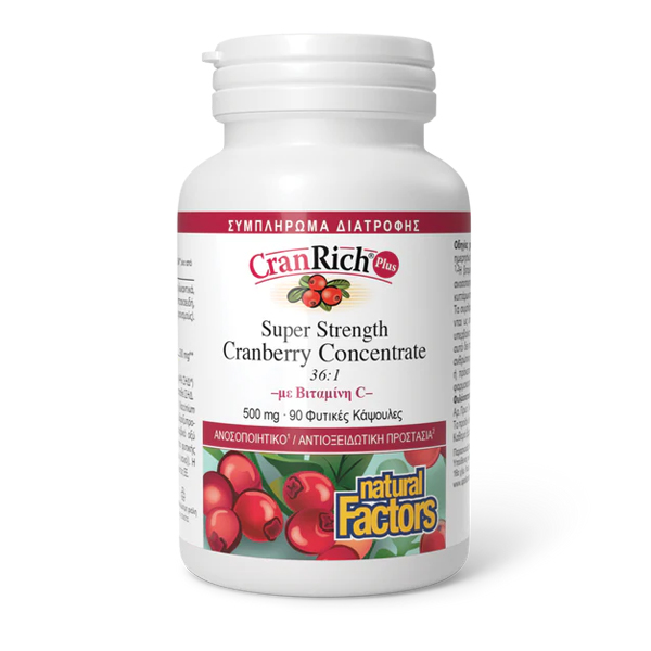 Το CranRich Plus της Natural Factors συμπυκνωμένο εκχύλισμα + βιταμίνη C είναι η ιδανική λύση για την υποστήριξη της υγείας του ουροποιητικού συστήματος.