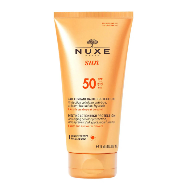 Το αντηλιακό γαλάκτωμα υψηλής αντηλιακής προστασίας Sun Melting Lotion High Protection από τη Nuxe εφαρμόζεται απλά, εύκολα και γρήγορα, προσφέροντας ένα διάφανο αποτέλεσμα.