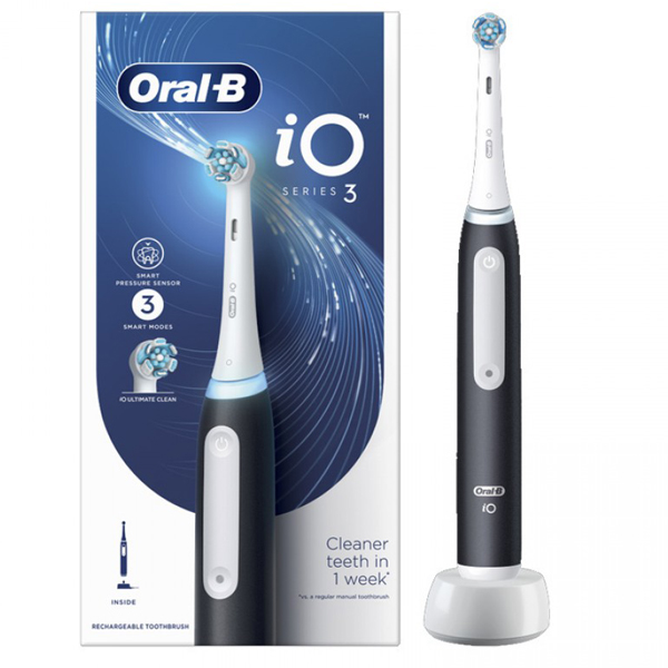 Η ηλεκτρική οδοντόβουρτσα iO Series 3 διαθέτει την καλύτερη τεχνολογία της Oral-B, που συνδυάζει τη στρογγυλή κεφαλή βουρτσίσματος εμπνευσμένη από οδοντιάτρους με ίνες μικροδονήσεων για αίσθηση επαγγελματικού καθαρισμού κάθε μέρα στο σπίτι.