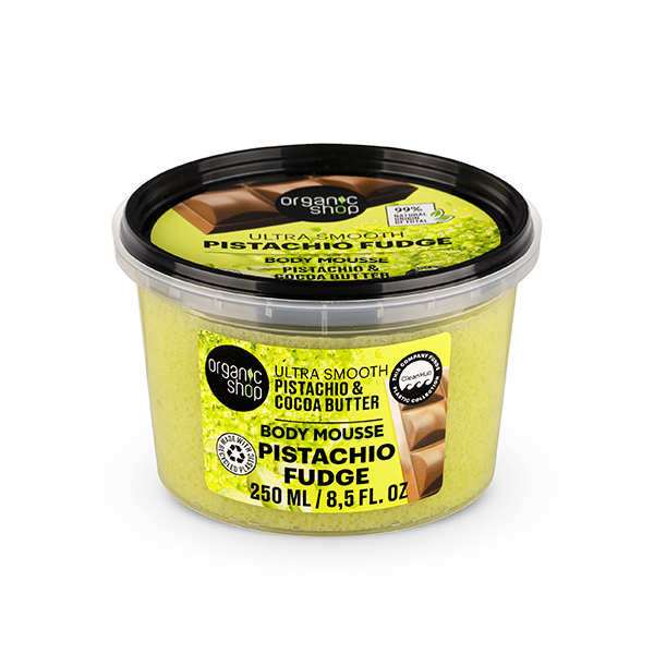 Η Organic Shop, μέσα από τη σειρά Organic Shop Basic, δημιούργησε ένα απολαυστικό mousse σώματος που συνδυάζει τη φυσική φροντίδα με τη βελούδινη υφή και το υπέροχο άρωμα φιστικιού και κακάο.