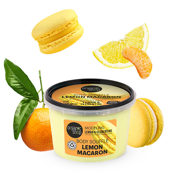 Το Body Souffle Lemon Macaron Modeling είναι μια απολαυστική κρέμα σώματος από τη σειρά Organic Shop, σχεδιασμένη για να προσφέρει βαθιά περιποίηση σώματος, ενυδάτωση και σμίλευση της επιδερμίδας.