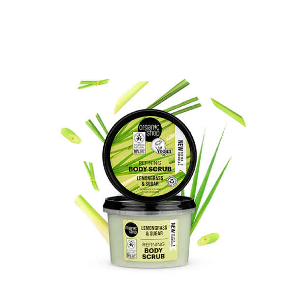 Ένα εκλεπτυσμένο scrub σώματος το Organic Shop Refining Lemongrass Scrub Σώματος Λείανσης με Λεμονόχορτο και Ζάχαρη 250 ml, έχει δημιουργηθεί με βιολογικό έλαιο λεμονόχορτου και φυσική ζάχαρη καθαρίζει απαλά και λειαίνει το δέρμα σας, κάνοντας το απαλό και μαλακό.