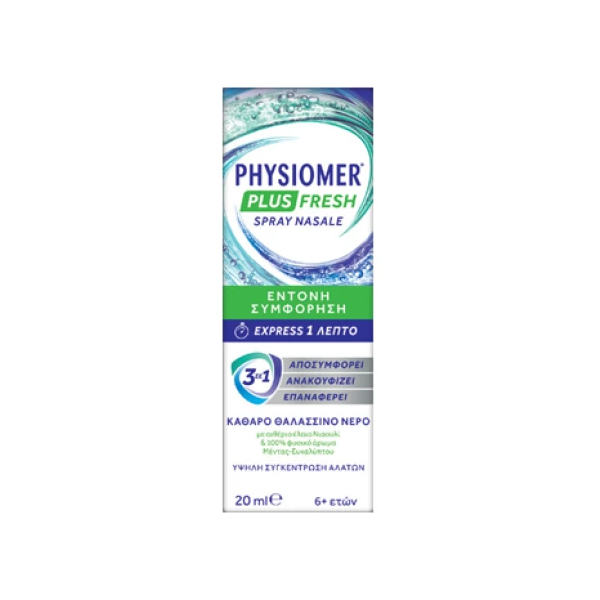 Το Physiomer Plus Fresh είναι ένα φυσικό και αποτελεσματικό ρινικό αποσυμφορητικό που αποσυμφορεί τη μύτη σε 1 λεπτό, χωρίς να τη βλάπτει.