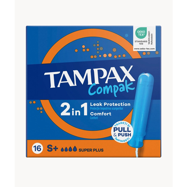 Τα ταμπόν Tampax Compak Super Plus προσφέρουν προστασία και διακριτικότητα για τις ημέρες μεγάλη ροή κατά τη διάρκεια της περιόδου σας. Τα ταμπόν Tampax Compak διαθέτουν διακριτικό και πλαστικό απλικατέρ με στρογγυλεμένο άκρο για άνετη εισαγωγή. Με κανάλια απορρόφησης που απορροφούν κατευθείαν στον πυρήνα και κωνικό τελείωμα προστασίας που συμβάλλει στην αποφυγή διαρροών για περιόδους χωρίς έννοιες. Απόλυτη προστασία από τις διαρροές που σας επιτρέπει να κάνετε ό,τι εσείς επιθυμείτε.