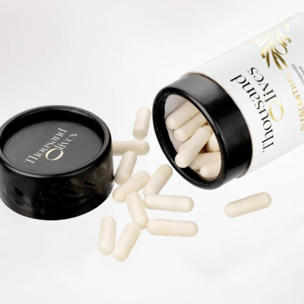 Το Thousand Olives Oleocanthal Ελαιοκανθάλη σε Υψηλή Συγκέντρωση από Εξαιρετικό Παρθένο Ελαιόλαδο είναι ένα νέο καινοτόμο συμπλήρωμα διατροφής με την υψηλότερη ποσότητα ελαιοκανθάλης ανά κάψουλα. Κάθε κάψουλα περιέχει 5mg μείγματος πολυφαινολών στη φυσική αναλογία που υπάρχουν στο ελαιόλαδο, από το οποίο πάνω από το 50% είναι ελαιοκανθάλη.