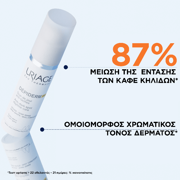 Η Uriage Depiderm είναι αγωγή κατά των κηλίδων με Spf50+ προλαμβάνει την επανεμφάνιση καφέ κηλίδων και προστατεύει τις περιοχές στις οποίες έχει εφαρμοστεί κάποια αγωγή από δερματολόγο, σε κάθε τύπο δέρματος.