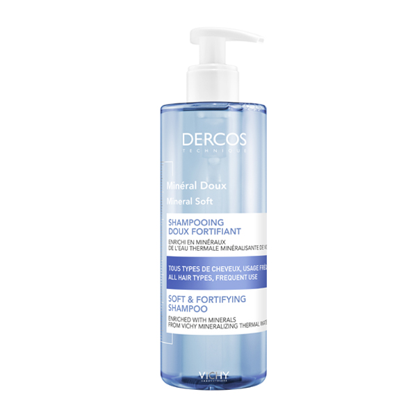 Απαλό σαμπουάν γα όλους τους τύπους μαλλιών με ιχνοστοιχεία και εμπλουτισμένο με Ιαματικό Νερό της Vichy.