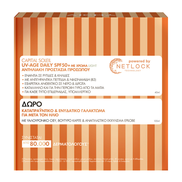 Η Vichy Capital Soleil UV-Age Daily Pigment προλαμβάνει τις ρυτίδες και τις κηλίδες που προκαλούνται από την UV ακτινοβολία και τη ρύπανση. Αποκλειστική Τεχνολογία NETLOCK, παρέχει πολύ υψηλή προστασία και ταυτόχρονα διορθώνει τα σημάδια φωτογήρανσης.