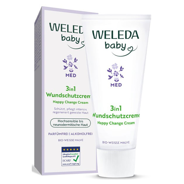 Η Weleda Baby 3 σε 1 κρέμα αλλαγής πάνας προστατεύει, περιποιείται εντατικά, αναδομεί το ερεθισμένο δέρμα.